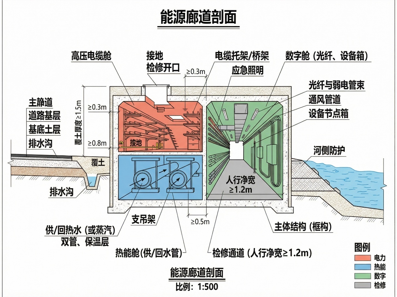 规划约束:能源设施必须服从“地形水文—功能分区—安全边界—可维护性—可逆性”五项约束的共同最优。