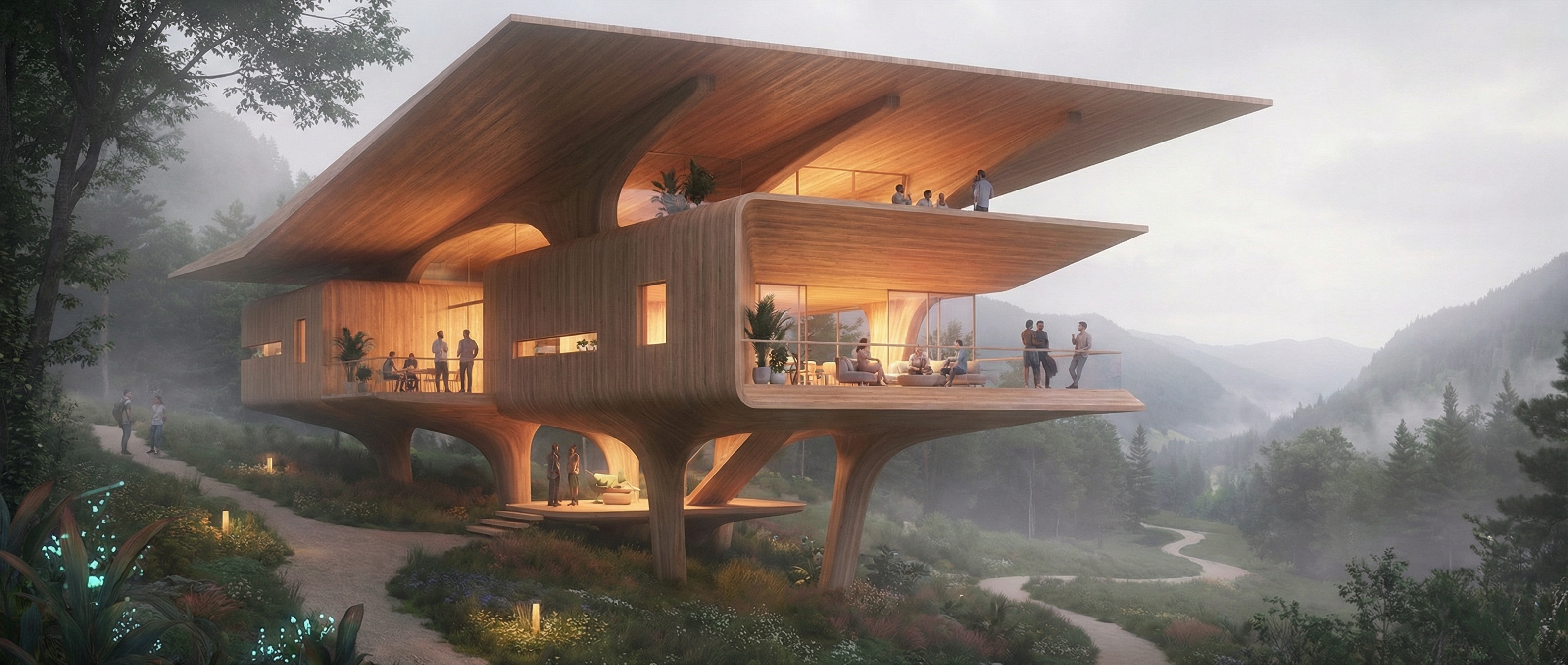 形态仿生突破:首次将真菌完整生命形态转化为工业建筑语言,实现生物智慧与工程技术的深度对话,空间效率达传统工业的300%。